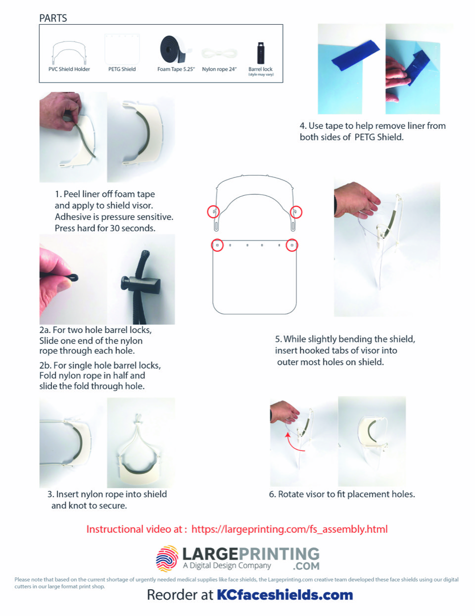 KC Face Shields assembly instructions are included in the kit. We also keep the most updated version here.